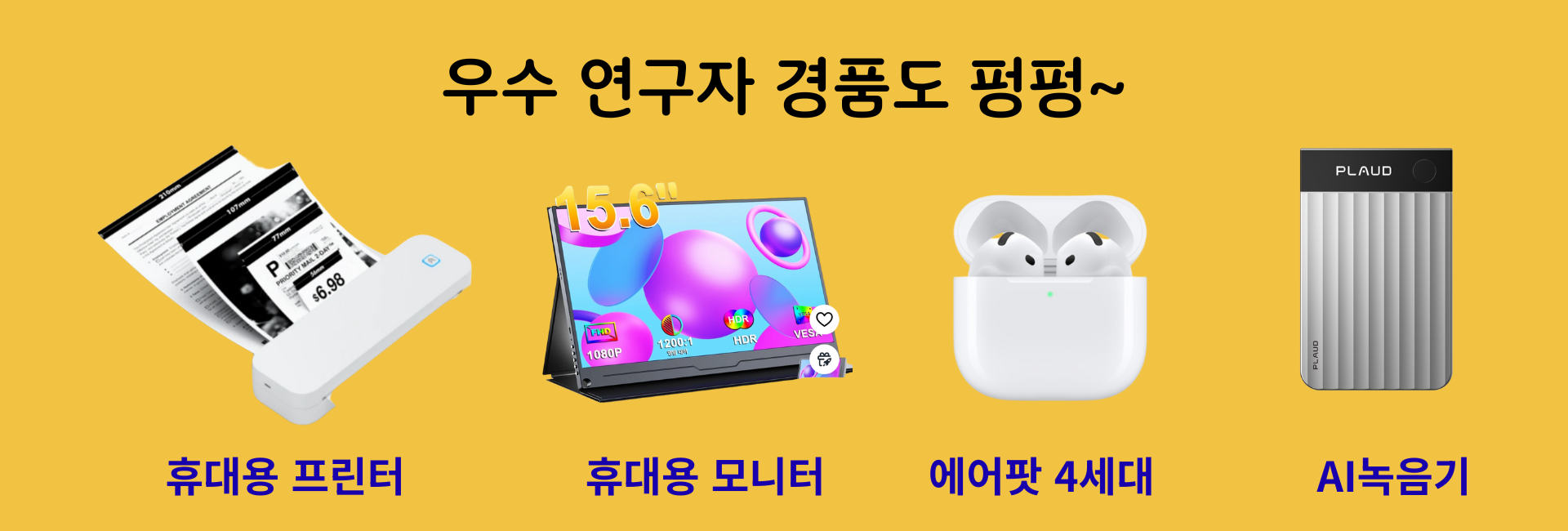 -마지막 날 16:00~17:00까지 연구발표회가 있으며 우수연구자에게 6명을 선발하여 상품(휴대용 모니터, 에어팟 4세대, AI녹음기 중)이 지급됩니다.