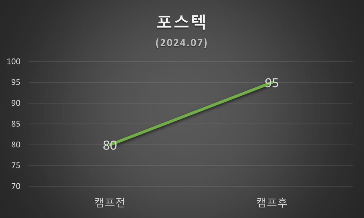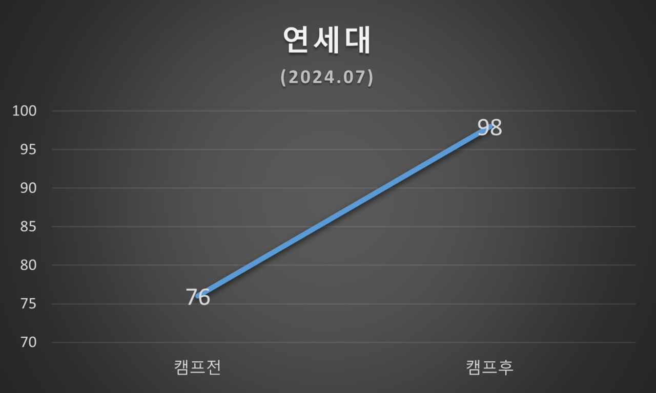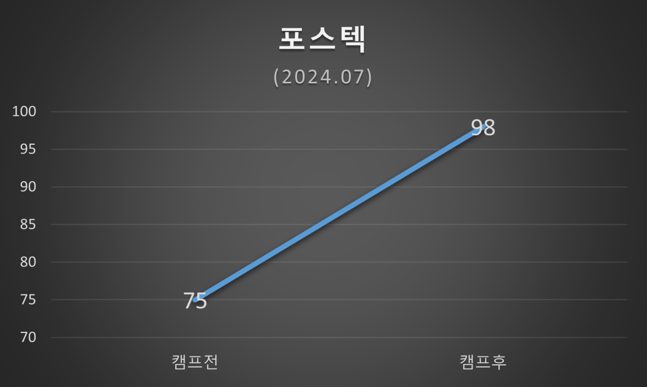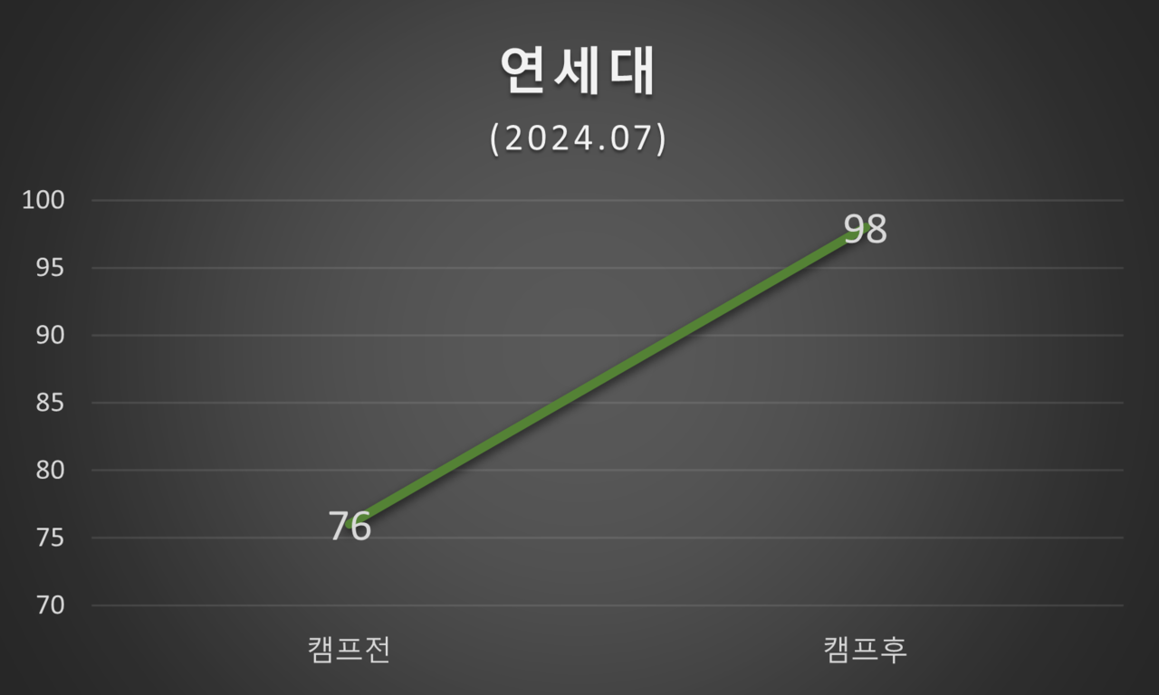평가 일정은 논문캠프 참여 직전과 논문캠프 종료 직후 각각 1회씩 평가하였습니다.