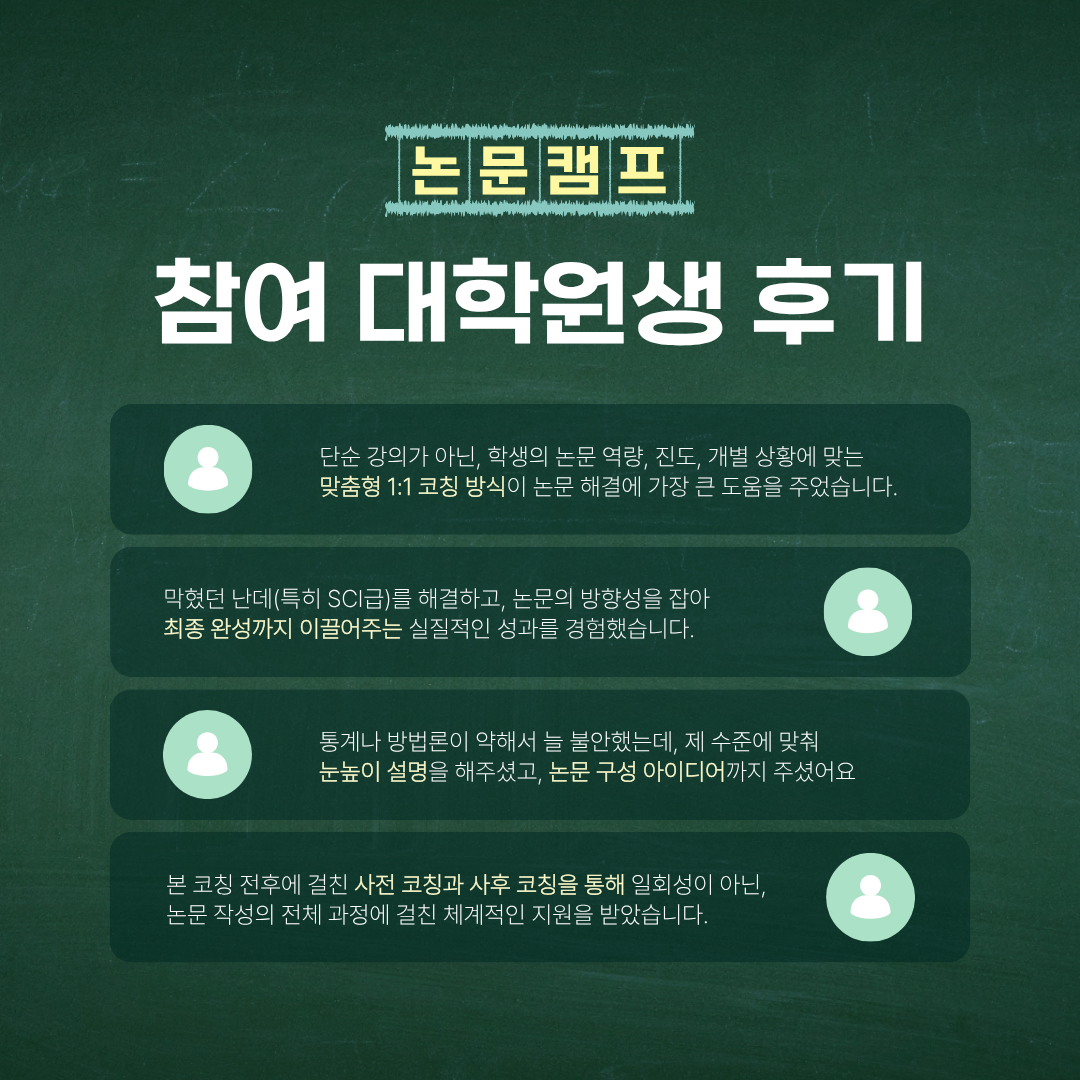 논문캠프는 반사회적인 논문대필을 막고 AI를 오남용하여 논문작성하지 않도록 안내하는 고급 도제식 프로그램입니다.