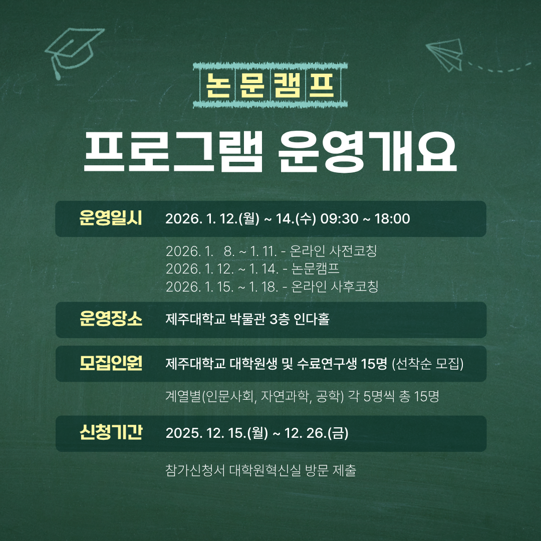 2026년 01월, 제주대학교 논문작성 집중캠프에 최종 선발되신 여러분들을 환영합니다.